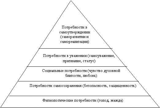 Рис. 6.3. Иерархия потребностей по Маслоу Перечисленные на схеме (рис. 6.2.) факторы дают представление о том, как эффективнее привлечь и обслужить покупателя. Факторы, оказывающие влияние на покупательское поведение. Культурные факторы. Самое сильное влияние на поведение потребителя оказывают культурные факторы, особенно общий его уровень, принадлежность к определенной субкультуре и социальному классу. Культура. Культура - определяющий фактор потребностей и поведения человека, который с детства усваивает в семье и через другие общественные институты определенный набор ценностей, стереотипов восприятия и поведения. Субкультура. Каждая культура состоит из более мелких субкультур, которые дают человеку возможность более полного отождествления и тесного общения с себе подобными. Субкультуры формируются на национальной, религиозной, расовой или региональной основе, многие из них образуют важные сегменты рынка, что должны учитывать производители при разработке продукции и планирования маркетинговых программ. Социальные классы. Практически каждое современное общество подразделяется на социальные слои. Одно из наиболее жестких разделений такого рода - касты, членам которых предписаны определенные роли, а переход из касты в касту не допускается. Гораздо менее жестко разделение общества на социальные классы. Социальные классы - построенные в строгой иерархии, относительно однородные, стабильные общественные группы, объединенные едиными ценностями, интересами и поведением. К критериям разделения общества на классы относят не только доход, но и работу, образование и место жительства. Представители различных социальных классов различаются стилем одежды, речью, организацией отдыха и многими другими характеристиками. К отличительным признакам социального класса относят: 1. склонность его представителей к более или менее одинаковому поведению; 2. наличие определенного социального статуса; 3. образование, род деятельности и уровень доходов; 4. возможность перехода из класса в класс. Представители социальных классов имеют определенные общие предпочтения в выборе различных товаров и торговых марок, включая одежду, домашнюю мебель, проведение досуга и автомобили. Некоторые производители, использую данное обстоятельство, фокусируют свое внимание на удовлетворении потребностей какого-то одного класса. Социальные факторы. Кроме культурных на потребительское поведение оказывают влияние такие социальные факторы, как референтные группы, семья, роли и статусы. Референтные группы. Референтные группы - группы, которые оказывают (при личном контакте) прямое или косвенное влияние на отношение человека к чему(кому)-либо и его поведение. Группы, оказывающие прямое влияние на человека, называются группами членства. Группы членства могут быть первичными (семья, друзья, соседи, все те общности, взаимодействие с членами которых носит постоянный и неформальный характер) и вторичными группами (профессиональные коллективы, религиозные и профсоюзные объединения, построенные скорее на формальной основе, общение с членами которых носит периодический характер). Референтные группы оказывают влияние на индивида по крайней мере в трех направлениях: они могут подтолкнуть человека к изменению своего поведения и стиля жизни; оказывают влияние