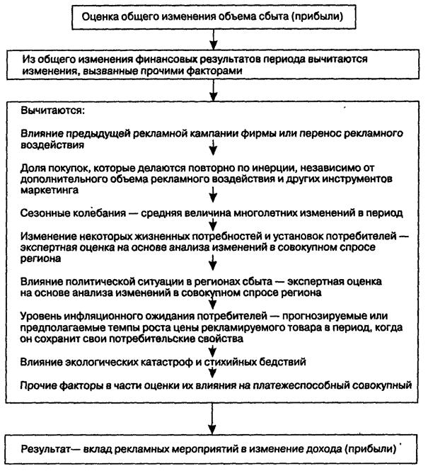 Вклад факторов в прирост сбыта можно определить на основе экспертных оценок. Метод моделирования основывается на использовании моделей для анализа эффективности, описывающих изменения товарооборота в зависимости от величины расходов на рекламу. В моделях предполагается, что зависимость товарооборота от ассигнований на рекламную деятельность можно выразить в виде функции, когда функция определена и известна, можно рассчитать и величину ассигнований на рекламу, которые обеспечат максимальную прибыль. Принято считать, что график этой функции – S-образная кривая. Впервые модель подобного типа была описана М. Видалем и X. Вольфом. В модели Видаля-Вольфа объем реализуемого товара в период времени есть функция от следующих факторов: затрат на рекламу; реакции сбыта на рекламу; уровня насыщения рынка рекламируемыми товарами нормы падения объема реализации при отсутствии рекламы.