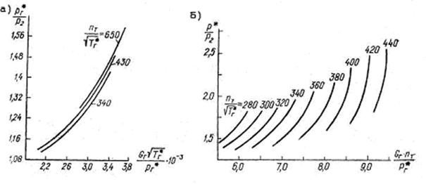 Выбор параметров для построения характеристики определяется ее назначением, особенностями совместной работы турбины и двигателя, а также наиболее характерными показателями, необходимыми для оценки работы турбины в данных условиях. Приближенное построение характеристик может быть произведено расчетным путем, но более достоверными являются характеристики, построенные на основании определения nT, TГ, GГ, p2 и других показателей на экспериментальном стенде.