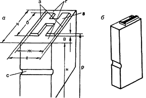 Наборно-отливной способ называют также типографским, так как он используется для набора оригинальных наборных форм, предназначенных для высокой (типографской) печати, и разделяют на: 1. ручной набор; 2. ручной строкоотливной крупнокегельный и механизированный набор — строкоотливной (линотипный); 3. буквоотливной строконаборный (монотипный). При автоматизированном строкоотливном и буквоотливном наборах в автоматизированном режиме проводилась только отливка строк по программе. Отливка пробельного или линеечного наборного материала, литер для ручного набора была автоматизирована. Вручную набирались строки с использованием литер, относящихся к разряду вещественных шрифтоносителей, заранее отлитых из свинцово-сурьмяно-оловянистого сплава с шрифтовых матриц и рассыпанных в ячейки шрифтовых касс, установленных в наборные реалы. Для каждой гарнитуры, кегля, начертания буквы, знака, раппорта орнамента отливался необходимый комплект литер. Для создания пробелов внутри строки в процессе набора использовался внутристрочный пробельный материал, который также располагался в ячейках касс. К печатающему материалу, используемому для набора, относятся литеры букв и знаков, печатающие линейки, литеры орнамента. Литера (рис. 3.1, а) представляет собой прямоугольный брусок, на верхней площадке которого расположено очко (а) литеры, изображающее букву или знак. Рельефное изображение буквы называется головкой литеры или высотой очка (в). Расстояние между передней и задней стенками литеры (к) носит название кегля, в размер которого входит очко строчных букв (б) без выступающих и свисающих элементов, и верхние и нижние заплечики (г). За счет верхних и нижних заплечиков создавался нормальный межстрочный пробел в процессе набора, они использовались для размещения выступающих и свисающих элементов букв (р, ц, б, у и т.д.). Литеры прописных букв и цифр (рис. 3.1, б) отливались без верхних заплечиков.