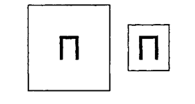 Рис. 7. 7. Пример оптической иллюзии изменения размеров изображения в зависимости от размеров окружающих элементов Пробелы внутри наборной полосы в акцидентных изданиях выполняют тоже важную композиционную роль: одинаковые по размеру элементы будут восприниматься по-разному в зависимости от окружающего их белого пространства. Так, на рис. 7.8 левая буква «П» выглядит меньше правой, хотя они абсолютно одинаковы. Эту особенность необходимо учитывать при выборе отбивок между строками текста акциденции. Пробелы не должны быть слишком малы, чтобы один текст не затенял другой, и не слишком велики, чтобы не «утонул в воздухе». Если пробелы малы, кегль шрифта, ширина рамок и бордюров должны быть уменьшены. При чрезмерно больших пробелах можно расширить рамки и использовать различные орнаментальные украшения.