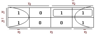 Из матрицы видно, что в минимальную форму функции обязательно войдут импликанты n (покрывает конституенту F), импликанта r (покрывает конституенту D). То же справедливо отностительно импликанты p. Что касается остальных, то нужно выбрать минимальную совокупность. Итак: f1min = n f2min = n Т.е. данная функция имеет две одинаково минимальные формы. Замечание: важным обстоятельством, усложняющим минимизацию функций, является присутствие перебора различных вариантов при поиске оптимального покрытия.