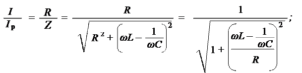 Отношение тока при произвольной частоте к току при резонансе: