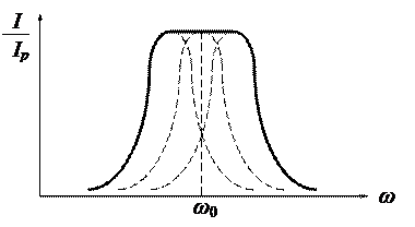 Резонансные кривые системы контуров с разнесенными резонансными частотами приведена на рис. 3.1.18.
