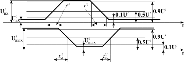 среднее время задержки распространения (tзд ср) – интервал времени, равный полусумме времен задержки распространения сигнала при включении и при выключении; в дальнейшем это время будем называть временем задержки элемента (tзд).