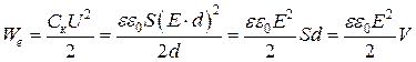 Но вокруг заряженного проводника и между пластинами заряженного конденсатора создается электростатическое поле, которое является носителем электрической энергии. Величину электрической энергии поля можно выразить через характеристики поля. Для однородного электрического поля в изотропном диэлектрике можно написать: