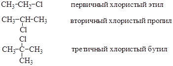 Галоидные соединения называются первичными, вторичными и третичными в зависимости от того, с каким атомом углерода связан атом галогена.
