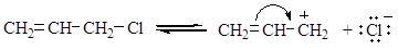 В этом случае p-электроны С=С связи в большей степени гасят положительный заряд, чем положительный индукционный эффект алкильной группы и эффект сверхсопряжения в алкилгалогенидах. Реакция замещения атома хлора в аллилгалогенидах протекает по механизмам SN1, в этом случае возможна перегруппировка.