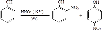 Под действием концентрированной азотной кислоты или нитрующей смеси фенол интенсивно окисляется, что приводит к глубокой деструкции его молекулы. При использовании разбавленной азотной кислоты нитрование сопровождается сильным осмолением несмотря на охлаждение до 0°С и приводит к образованию о- и п- изомеров с преобладанием первого из них: