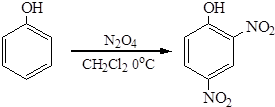 При нитровании фенола тетраоксидом диазота в инертном растворителе (бензол, дихлорэтан) образуется 2,4-динитрофенол: