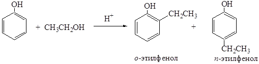 Алкилирование протекает последовательно с образованием моно-, ди- и триалкилфенолов. Одновременно происходит кислотно-катализируемая перегруппировка с миграцией алкильных групп: