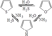 Практическое значение имеет синтез пиррола и тиофена из более доступного фурана.