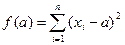 Используя это свойство, при расчетах следует сокращать все веса на их общий множитель или выражать многозначные числа весов в более крупных единицах измерения. 5. Сумма квадратов отклонений индивидуальных значений признака от средней арифметической меньше, чем от любого другого числа. Доказательство: (везде сумма i =1 до n) Составим сумму квадратов отклонений от переменной а: