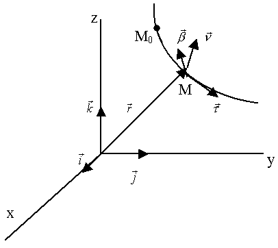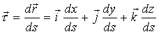 Единичный вектор касательной к траектории (S – длина дуги М0М):