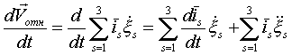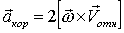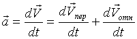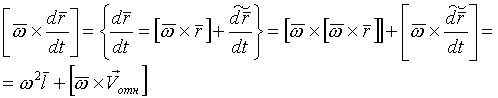 Ускорение Кориолиса: Половина ускорения Кориолиса получена при дифференцировании по времени переносной скорости, а вторая половина – при дифференцировании относительной скорости.
