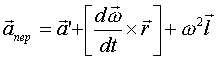 Переносное ускорение – определяется как ускорение того места в подвижной системе отсчета, в которой точка М находится в рассматриваемый момент времени; вычисляется по формуле Ривальса:
