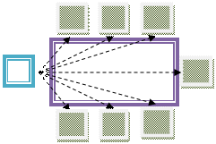 Слово «стиль» греческого происхождения, что в переводе означает «почерк», т. е. определенная манера обращения руководителя к подчиненному. Стили и методы руководства существуют в единстве. Стиль руководства служит формой реализации различных методов управления (организационно-распорядительских, экономических, социально-психологических), обеспечивая эффективный процесс достижения целей организации. Стиль руководства – это совокупность относительно устойчивой системы способов, методов и форм практической деятельности менеджера, а также манеры поведения с подчиненными в процессе подготовки и реализации управленческих решений. Учитывая личностные, субъективно-психологические характеристики человека каждый руководитель имеет свой, только ему присущий индивидуальный стиль руководства. Впервые классификацию стилей руководства предложил К. Левин, который выделил авторитарный, демократический и либеральный (анархический) стили. В настоящее время данная дифференциация стилей считается традиционной классификацией. Авторитарный (автократический) стиль руководства предполагает использование высокой централизации власти в руках руководителя, выключение механизма самоуправления путем присвоения себе права всеобщего контроля, высокой степени регламентации деятельности подчиненных и определенного морального давления на них, отстранения работников от процесса выработки решений. В рамках данного стиля требуется неукоснительное соблюдение либо собственных распоряжений (жесткий авторитарный стиль), либо различных инструкций (бюрократический стиль управления). В случае, если бюрократ избегает прямого принуждения и допускает сотрудников к выработке некоторых решений, применяет моральные поощрения, тогда говорят о благосклонном авторитарном или псевдодемократическом стиле руководства. Руководитель-автократ характеризуется консервативностью и стереотипностью мышления, излишне осторожен при восприятии всего нового и практически всегда пользуется одними и теми же методами. Содержание его деятельности состоит из приказов, команд и распоряжений, обязательных для исполнения. Даже размещение людей в процессе совещаний починено идеологии автократа, который держит всех в поле зрения (рис. 36).