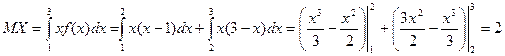 Появление такого результата следовало ожидать, так как график ф-ции f(x) симметричен относительно х=2, т.е. х = 2 – среднее значение СВ.