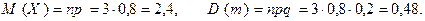 Очевидно, что использование формул последней теоремы упрощает и ускоряет вычисление математического ожидания и дисперсии биномиально распределенной случайной величины по сравнению с применением исходных определений для М(Х) и