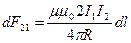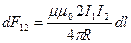 Анлогично можно получить выражение силы F12, действующей на проводник с током I1, находящейся в поле второго проводника В2: