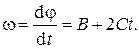 Угловую скорость ω найдем, взяв первую производную угла поворота по времени: