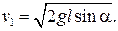 где vi – модуль скорости ящика перед падением на тележку; v 1 x = v 1 cosα – проекция этой скорости на ось х. Отсюда Модуль скорости v 1 определим из закона сохранения энергии: