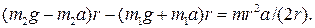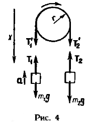 где ε = a / r; lz = ½ mr 2 — момент инерции блока (сплошного диска) относительно оси z. Согласно третьему закону Ньютона, с учетом невесомости нити