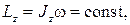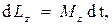 где d L z — изменение проекции на ось z момента импульса маховика, вращающегося относительно оси z, совпадающей с геометрической осью маховика, за интервал времени d t; М z — момент внешних сил (в данном случае момент сил трения), действующих на маховик относительно оси z. Момент сил трения можно считать не изменяющимся с течением времени (M z = const), поэтому интегрирование уравнения (1) приводит к выражению