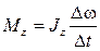 где J z — момент инерции маховика относительно оси z; Δω — изменение угловой скорости маховика. Приравняв правые части равенств (2) и (3), получим M zΔ t = J zΔω, откуда