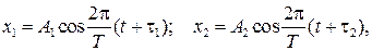 Отсюда видно, что оба складываемых гармонических колебания имеют одинаковую циклическую частоту ω = 2π/ T. Начальные фазы первого и второго колебаний соответственно равны