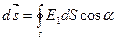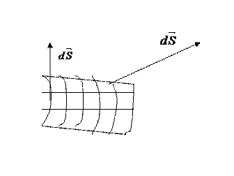 Если поверхность замкнуть, то вектор направлен наружу. Для вычисления потока через эту поверхность надо на каждом участке вычислить скалярное произведение
