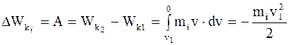 Так как материальная точка и состояние тела были выбраны произвольно, то кинетическая энергия i-й материальной точки до начала торможения была следующей: