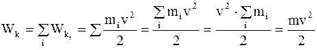 (7.31) Кинетическая энергия тела массой m равна сумме кинетических энергий отдельных материальных точек (частей) этого тела. В рассматриваемом случае