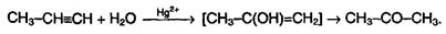 3. Гидратация (реакции Кучерова). Присоединение воды к алкинам катализируется солями ртути (II):
