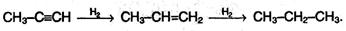 В присутствии металлических катализаторов алкины восстанавливаются путем последовательного присоединения молекул водорода, превращаясь сначала в алкены, а затем в алканы: