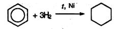 Все рассмотренные выше реакции протекают по механизму электрофильного замещения Se. Наряду с реакциями замещения, ароматические углеводороды могут вступать в реакции присоединения, однако эти реакции приводят к разрушению ароматической системы и поэтому требуют больших затрат энергии и протекают только в жестких условиях: 6. Гидрирование бензола идет при нагревании и высоком давлении в присутствии металлических катализаторов (Ni, Pt, Pd). Бензол превращается в циклогексан: