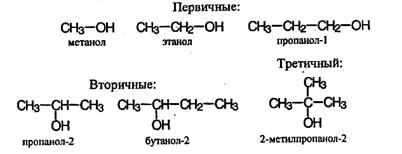 Изомерияодноатомных спиртов связана со строением углеродного скелета (например, бутанол-2 и2-метилпропанол-2) и с положением группы ОН (пропанол-1 и пропанол-2).