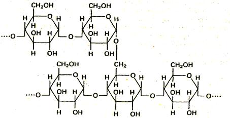 Линейная полимерная цепь в молекуле амилозы свернута в спираль. Внутри спирали находится канал размером 0,5 им, который может захватывать некоторые молекулы, например молекулу иода. Образующийся комплекс амилозы и иода имеет характерное синее окрашивание. Эта реакция служит для обнаружения иода. В отличие от амилозы, амилопектин не растворим в воде и имеет разветвленное строение. В его молекуле остатки α-глюкозы связаны не только 1,4-связями, но и 1,6-связями: