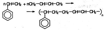 В 1950-х гг. была разработана технология производства синтетического бутадиенового каучука с линейной стереорегулярной структурой (такой каучук называют дивиниловым). Для этого используют металлоорганические катализаторы – алкилпроизводные алюминия с добавками солей титана, циркония и других веществ. Аналогичным образом получают синтетический изопреновый каучук со стереорегулярной структурой. Некоторые синтетические каучуки получают, используя процесс сополимеризации. Например, бутадиен-стирольный каучук синтезируют по реакции: