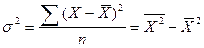 Среднее квадратическое отклонение по величине в реальных совокупностях всегда больше среднего модуля отклонений. Разница между ними тем больше, чем больше в изучаемой совокупности резких, выделяющихся отклонений, что служит индикатором «засоренности» совокупности неоднородными с основной массой элементами. Для нормального закона распределения отношение Квадрат среднего квадратического отклонения представляет собой дисперсию отклонений, на использовании которой основаны практически все методы математической статистики, ее формула имеет вид (29) – для несгруппированных данных (простая дисперсия) и (30) – для сгруппированных (взвешенная дисперсия):
