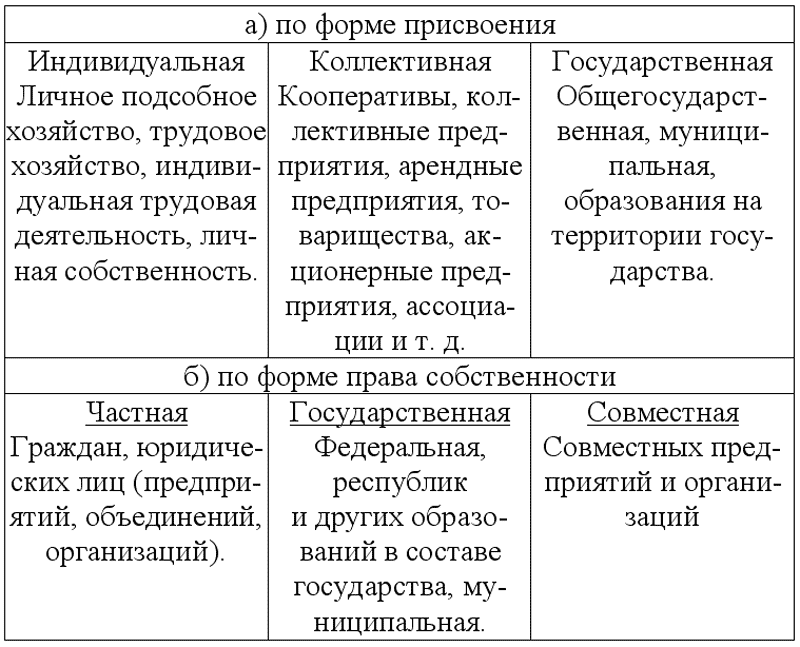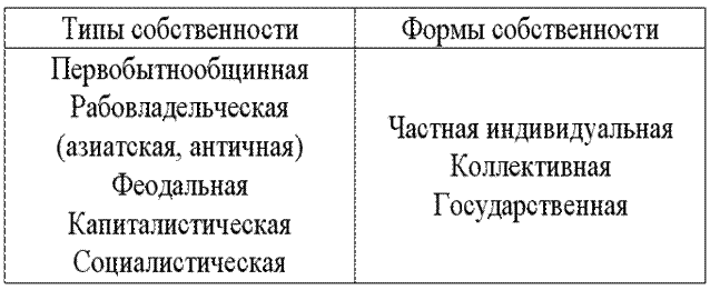 Типы и формы собственности. Типы, формы и виды собственности