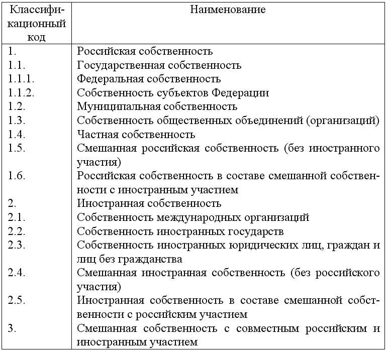 Классификатор форм собственности предусматривает наличие в нашей стране различных форм собственности, включая иностранную и смешанную собственность с совместным российским и иностранным участием.