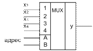 Мультиплексор - комбинационное устройство в котором выход соединён с одним из входов в соответствии с кодом адреса.