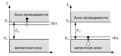 Энергиия ионизации донора минимальная энергия, которую необходимо сообщить электрону, находящемуся на донорном уровне, чтобы перевести его в зону проводимости.