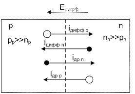 Рис. 4.6 Токи через p-n переход (основных и неосновных носителей)