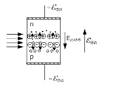 Фотодиод может включаться без внешнего источнщса питания (рис. 5.23) = это т.н. пре образовательный (фотогенераторный) режим. Под действием света в р-n переходе происходит генерация пар носителей заряда (электронов и дырок). Накопление основных носителей в областях р и n приводит к возникновению фото-ЭДС (e фд). При увеличении облучения генерация пар носителей растет и увеличивается величина фото - ЭДС, до тех пор, пока она не уравновесит внутреннее диффузионное поле р-n перехода. Чем больше ширина запрещенной зоны и чем больше концентрация примесей в областях, тем больше фото -ЭДС.