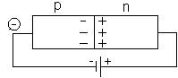 А) Б) В) А) В области р-типа акцепторные примеси увеличивают концентрацию дырок, а n-типа донорные примеси – концентрация электронов. Б) Соединение двух полупроводников вызывает протекание (диффузию) основных носителей через переход дырки из р в n, а электроны из n в р. В) Вблизи перехода в полупроводнике n-типа наблюдается избыток положительных зарядов, а в полупроводнике р-типа – отрицательных зарядов. Эти заряды противоположного знака, выстроившиеся с двух сторон перехода, создают напряжение, называемое потенциальным барьером (очень маленькое). К p-n переходу можно подвести внешние напряжение от источника постоянного тока – в результате переход со смещением. Имеются две возможности смещения, которые зависят от полярности подключения источника к переходу. 1) 1) Переход, смещенный в проводящем направлении, что положительный полюс вытягивает электроны из полупроводника p-типа во внешнюю цепь и отталкивает дырки, тогда как отрицательный полюс поставляет электроны в полупроводник n-типа и притягивает дырки. В связи с этим в полупроводнике происходит диффузия основных носителей: дырок из p в n и электроны из n в p. Ток, протекающий в цепи в результате диффузии основных носителей, называется диффузионным. 2) При подключении противоположной полярности переход смещается в обратном направлении. В этом случае дырка из n области движется в направлении отрицательного полюса, а электрон из полупроводника p-типа в направлении положительного полюса. Это движение не основных носителей, и во внешней цепи протекает малый обратный ток. Приложенное в обратном направлении напряжение смещение увеличивает потенциальный барьер p-n переход лежит в основе диода.