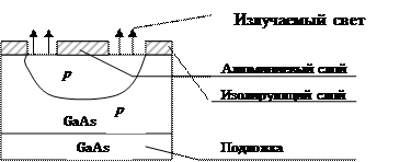 Слой типа р сделан тонким для того, чтобы не препятствовать прохождению света, излучаемым р-п переходом.