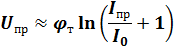 Прологарифмировав это выражение можно определить падение напряжения на переходе при прямом включении. Заменив Eвн на Uпр, получим: