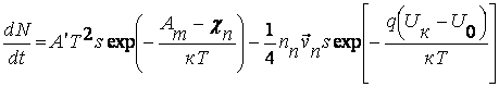 Поскольку поле в металл не проникает, то эта работа от величины приложенного к диоду внешнего напряжения не зависит, в то время как высота потенциального барьера для электронов полупроводника, при их переходе в металл, будет изменяться с изменением приложенного напряжения как и во всяком электрическом переходе. На этом основано выпрямляющее действие диода Шоттки. Переход электронов из металла в полупроводник можно рассматривать как своеобразную термоэлектронную эмиссию через барьер, высота которого определяется (11.15). Следовательно, число электронов переходящих из металла в полупроводник за единицу времени, будет равно